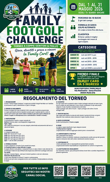 Il torneo “Family Footgolf Challenge” è organizzato dal Mini Footgolf Park Malo con l’obiettivo